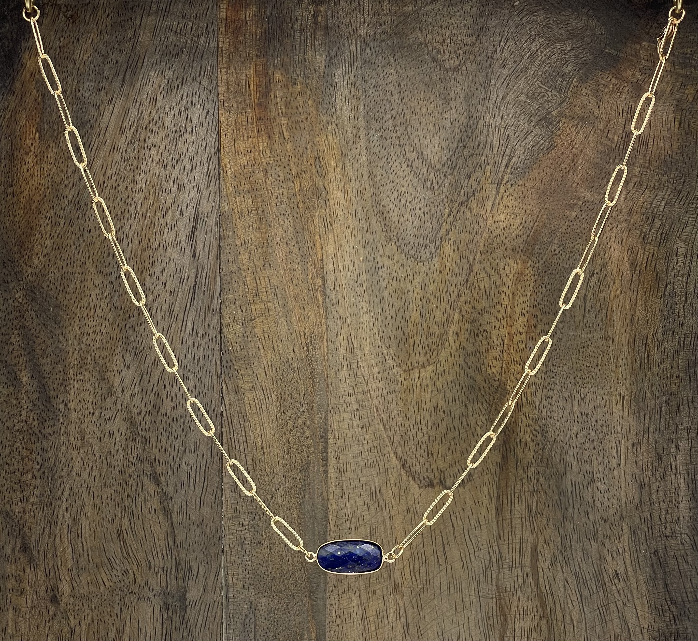 Lapis Lazuli et chaine en acier doré.